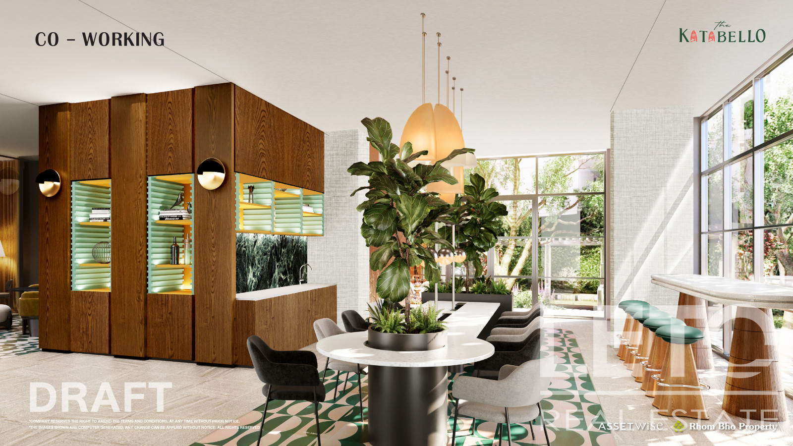 Бассейны внутри комплекса, коворкинг, тренажерный зал, детский клуб, йога, спа, библиотека, места для животных.