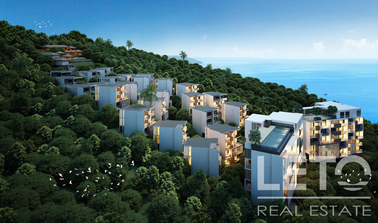 The project consists of a total of 238 units spread across 26 four-story buildings. The complex features two pools, including an infinity pool situated at the highest point of the complex. Additionally, there is a poolside bar, spa, gym, and a hilltop restaurant with breathtaking views of the Andaman coastline.