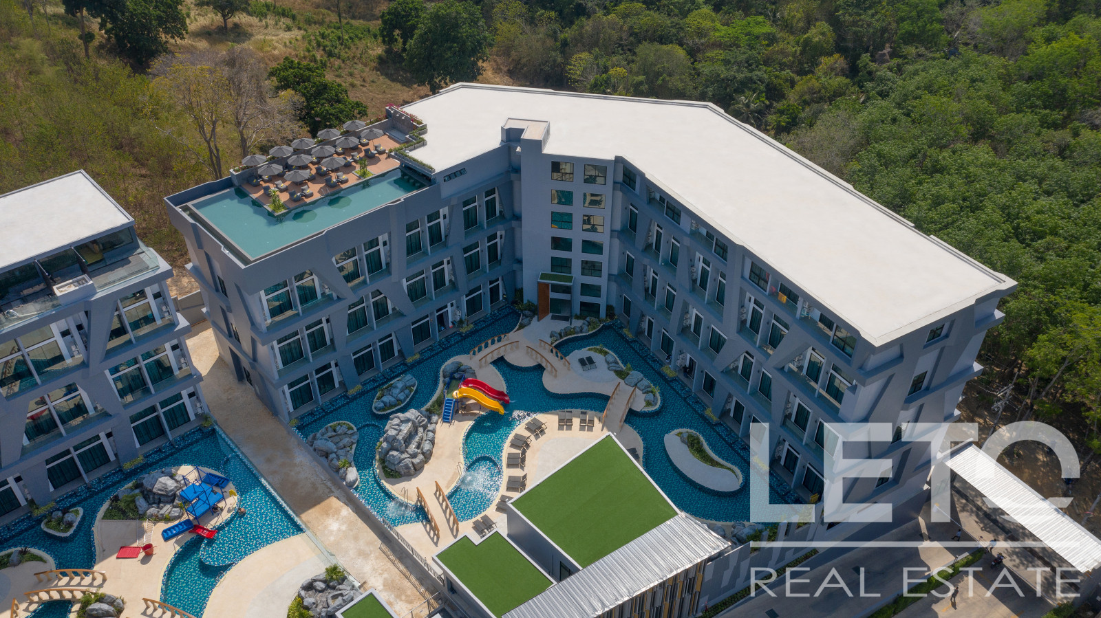 A duplex apartment in a completed complex located 600 meters away from Naiharn Beach.