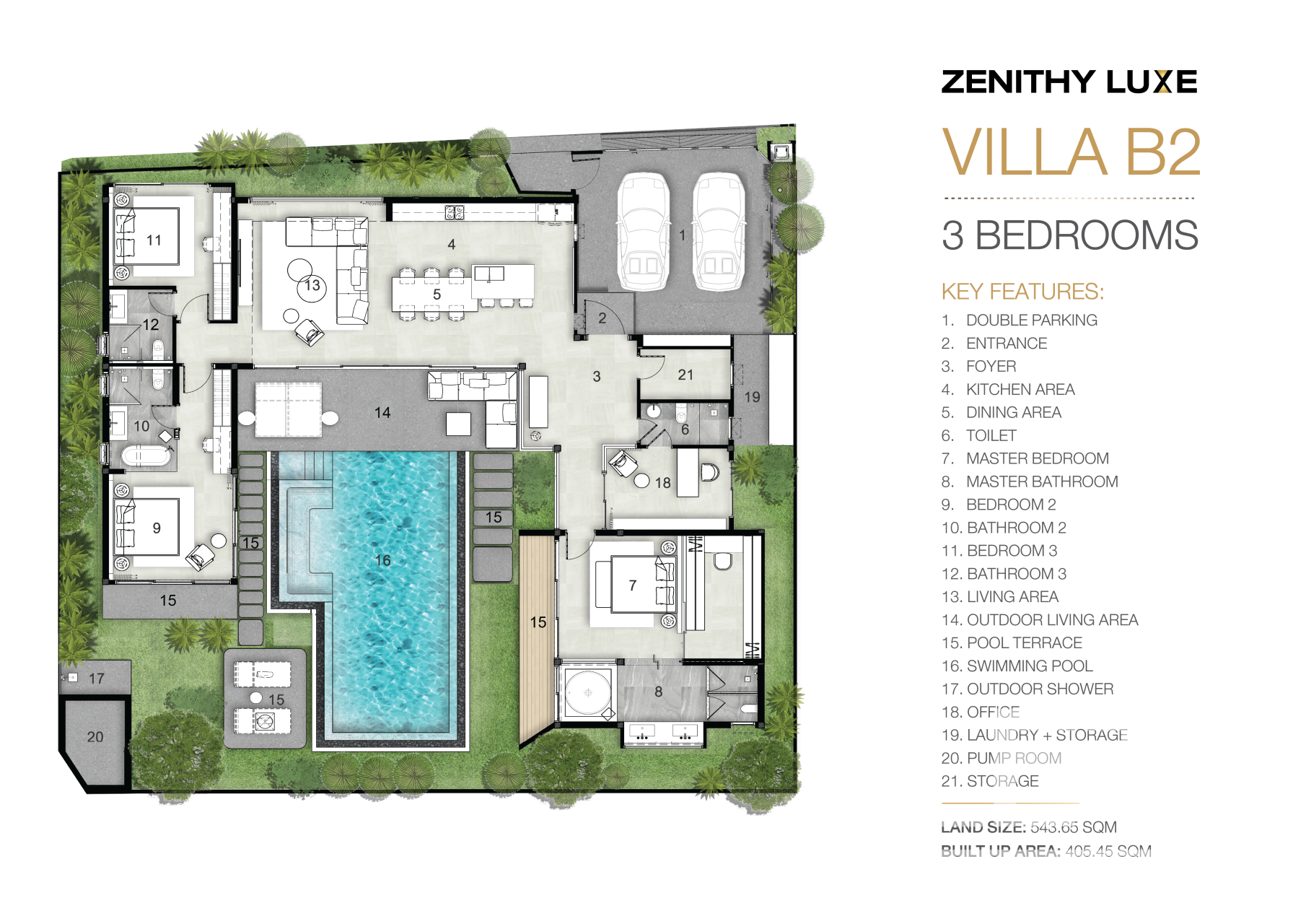 Villa area: 403.45 and 405.45 sq.m.