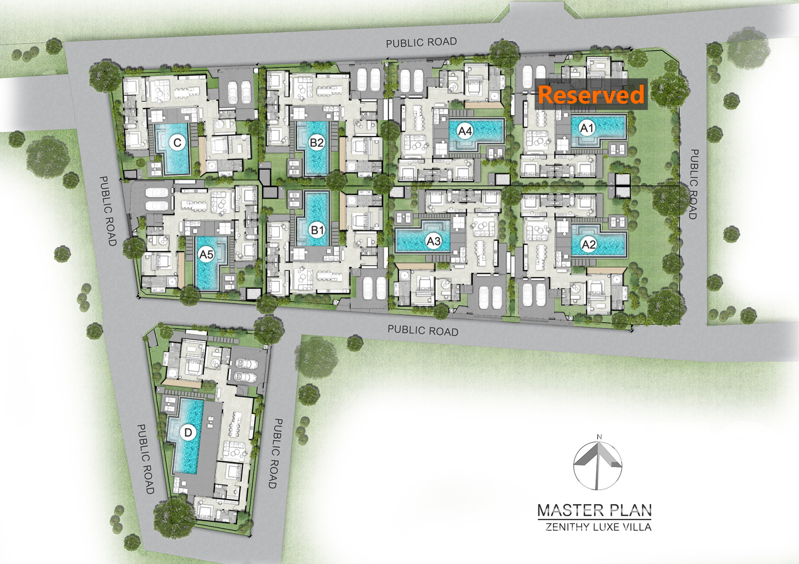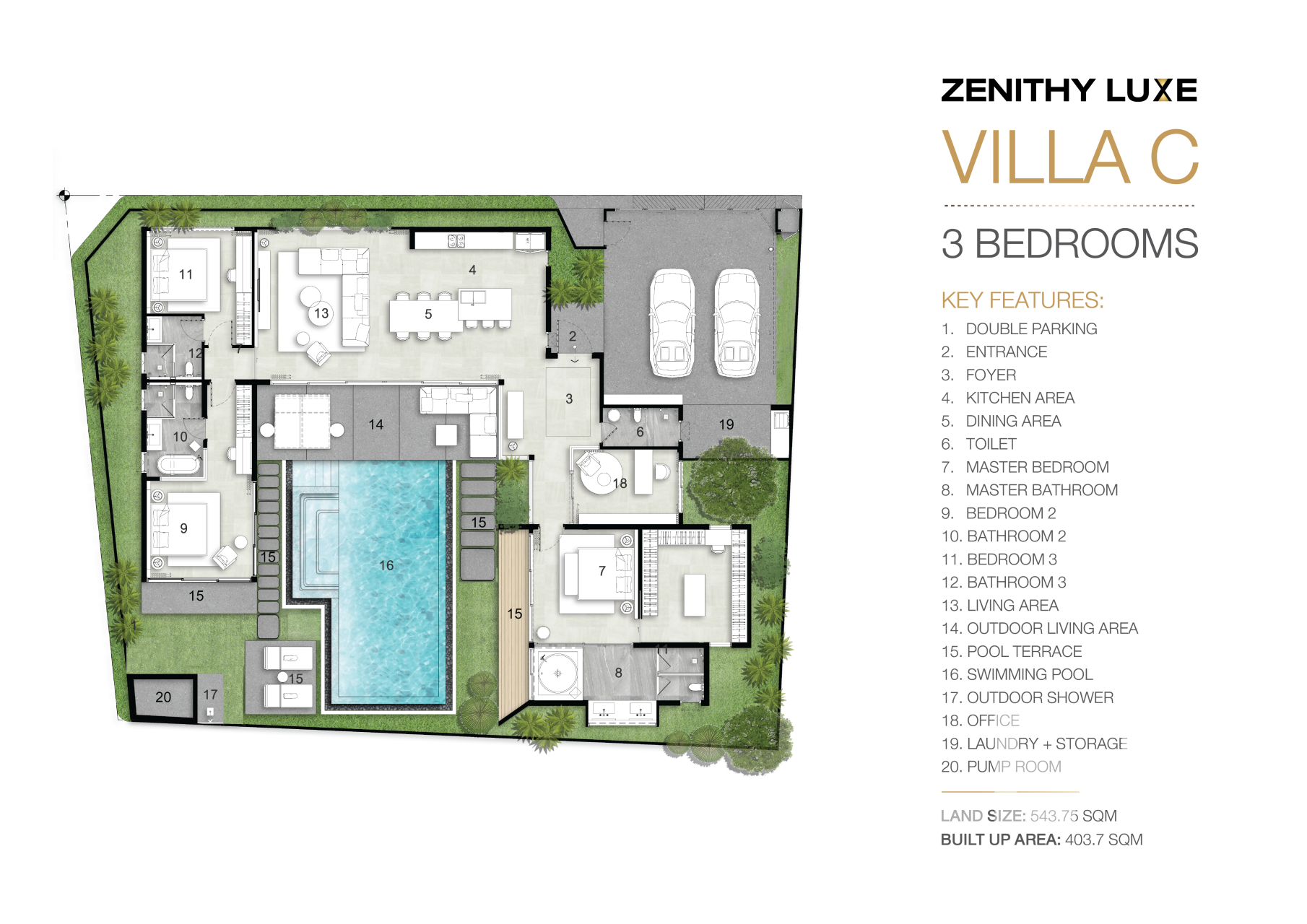 Villa Type C: with three bedrooms + multifunctional room and four bathrooms.