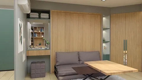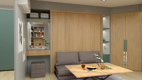 Площадь студии компактная, хорошо спроектирована, чтобы эффективно использовать пространство.