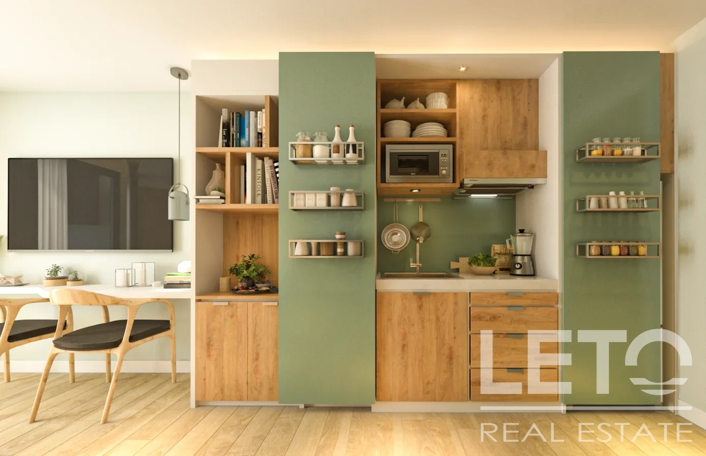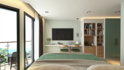 Эта студия в Serene Condominium представляет собой современное экологичное жилье, которое воплощает принципы застройщика по сохранению окружающей среды, предоставляя жильцам спокойный и экологичный образ жизни.