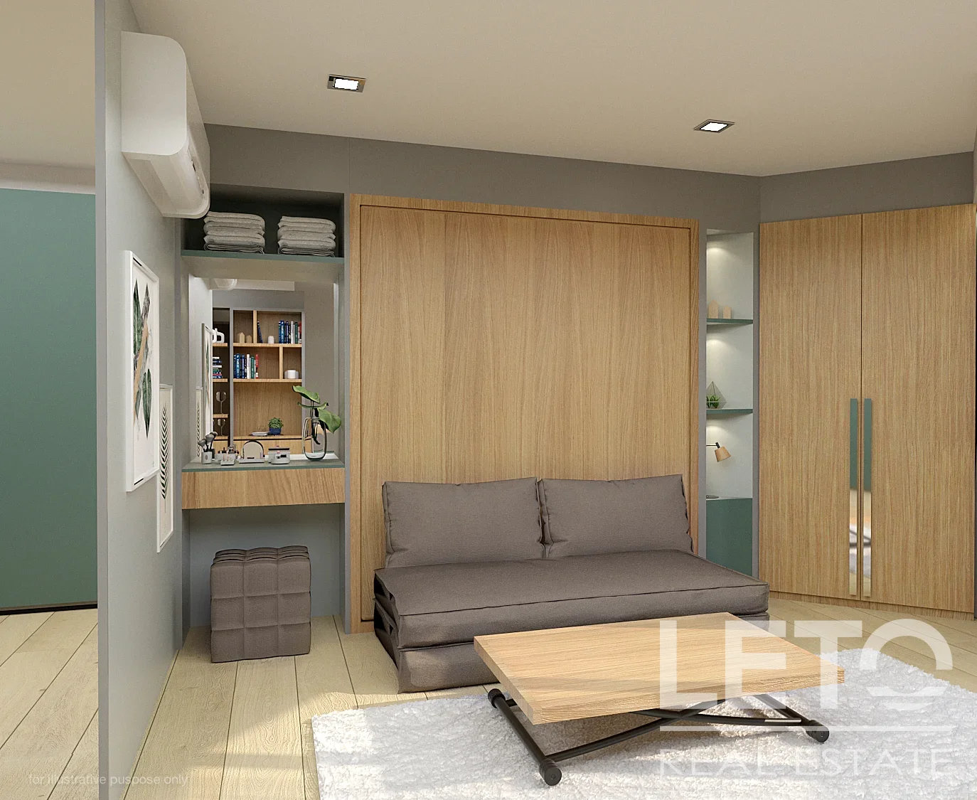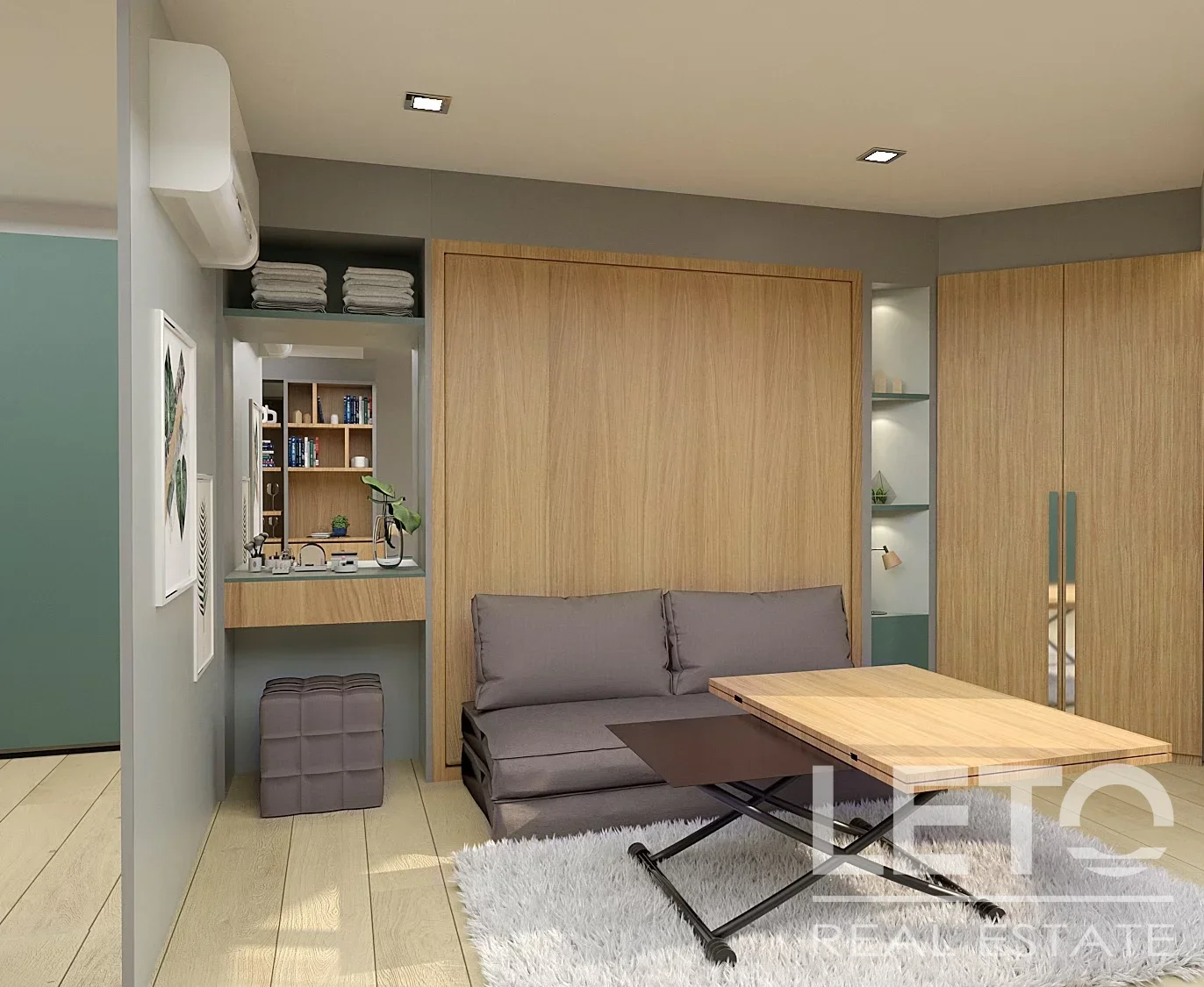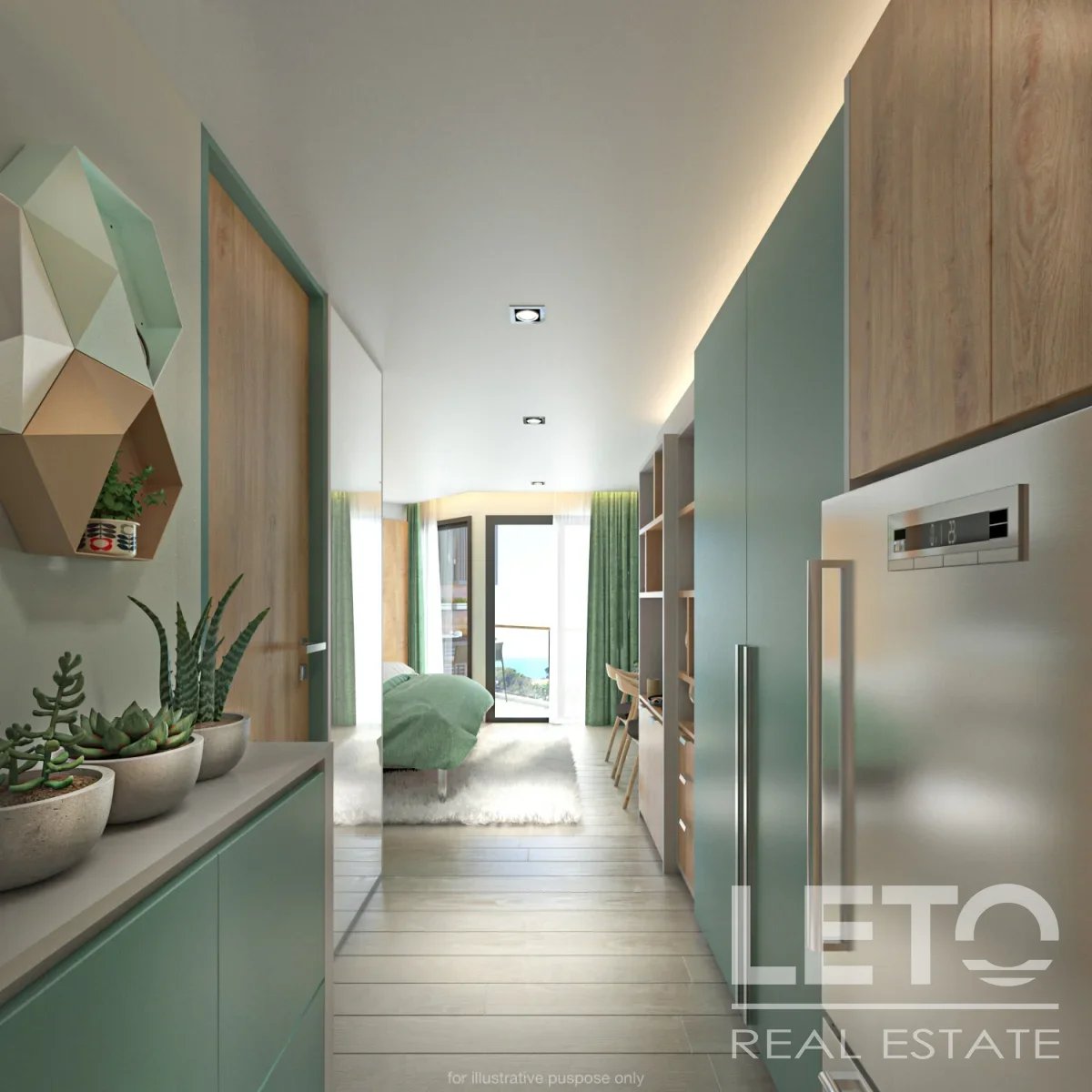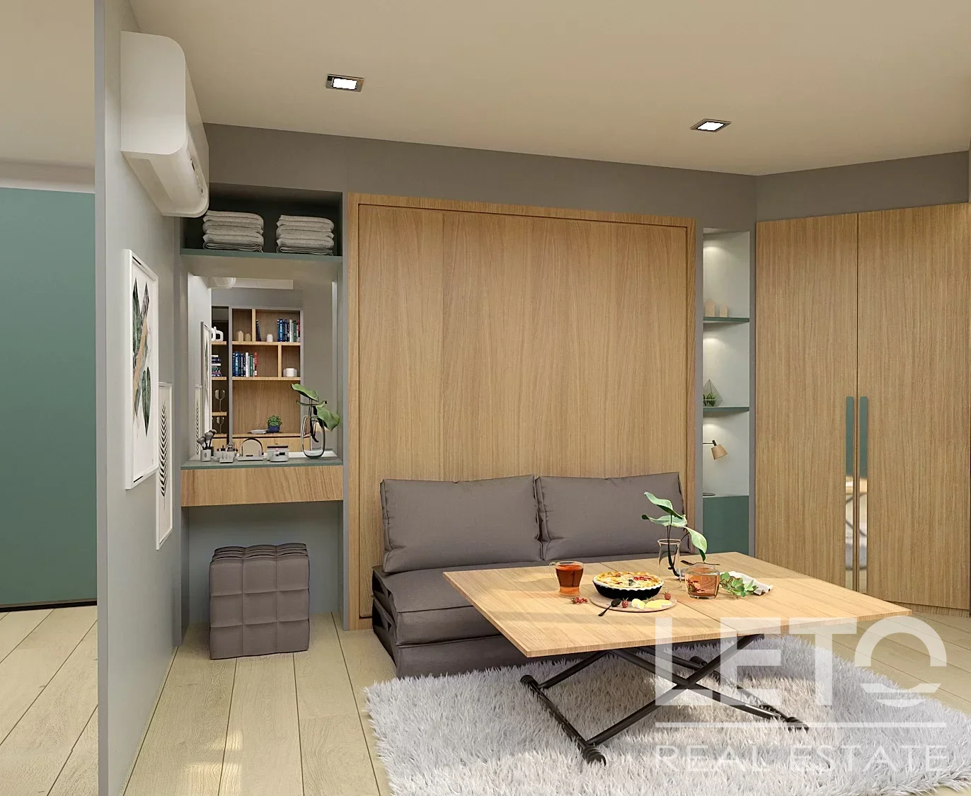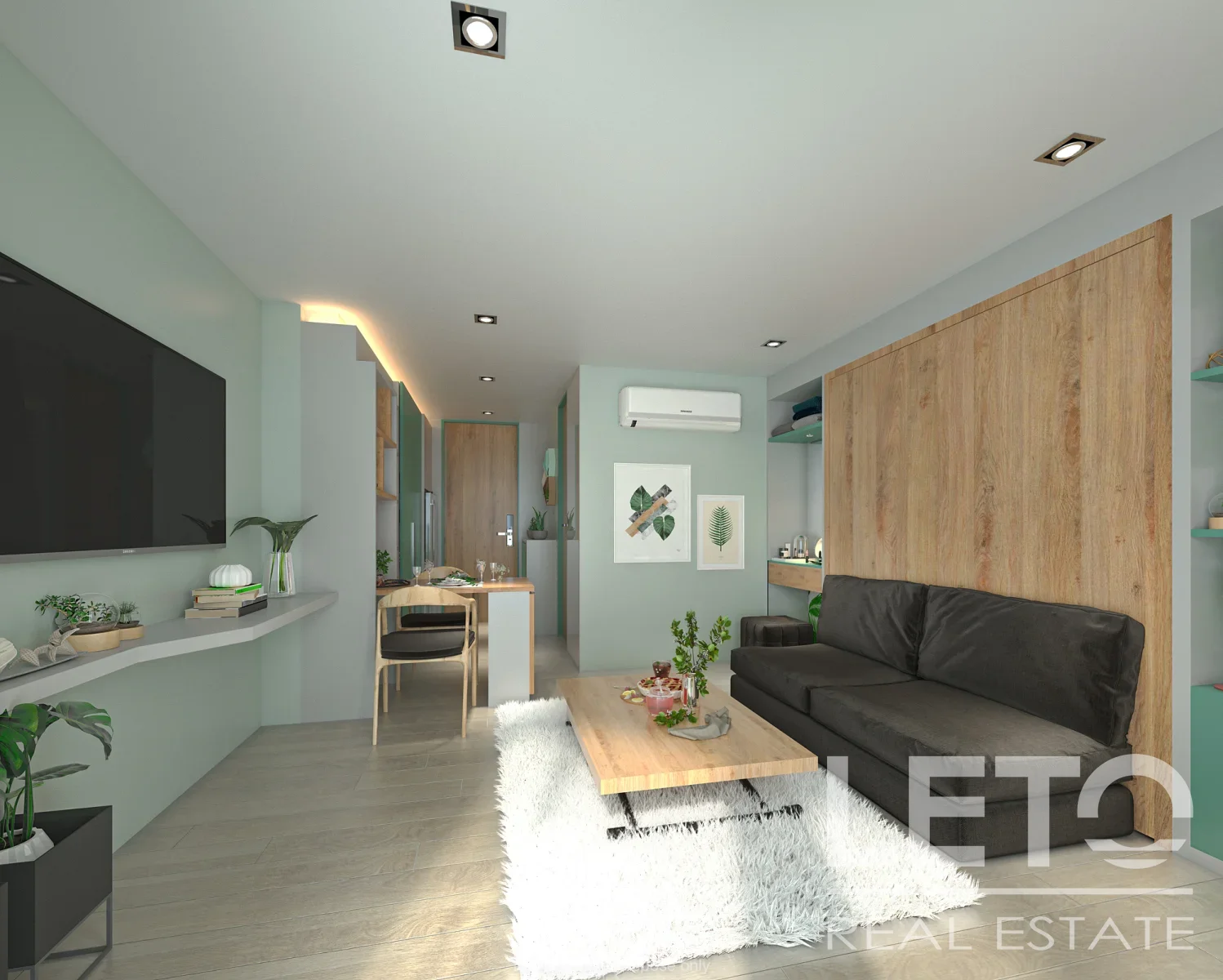 Квартира-студия площадью 28 кв.м. на втором этаже Serene Condominium отражает экологичные принципы проекта.