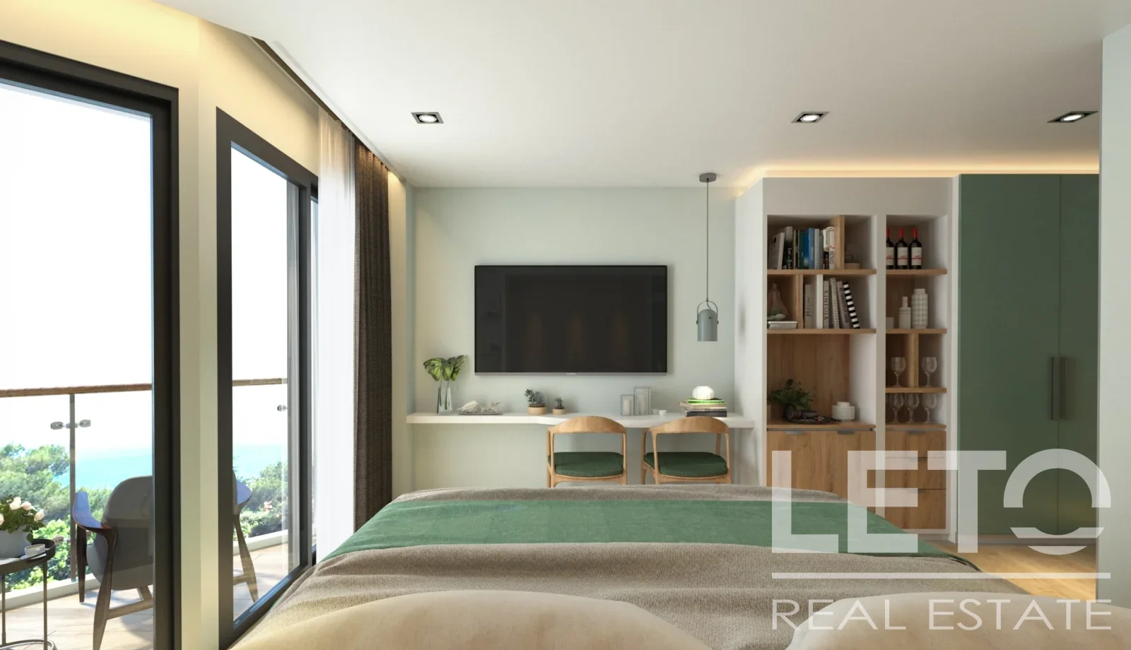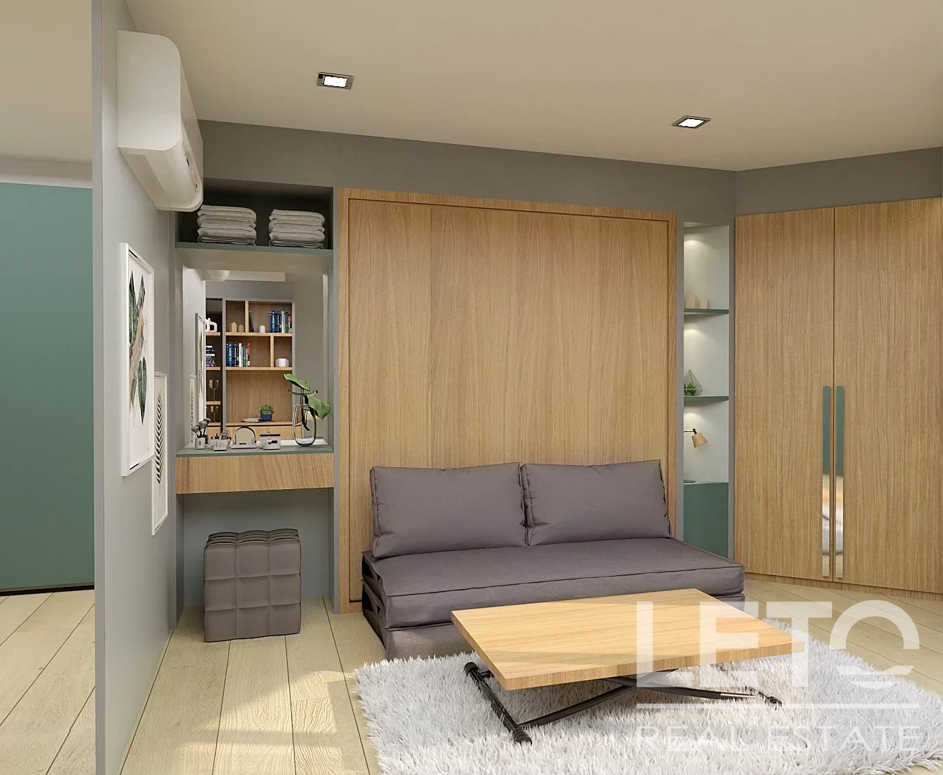 Для регулирования климата в студии установлена энергоэффективная система кондиционирования и освещения, обеспечивающие комфортные условия проживания при минимальном потреблении энергии.