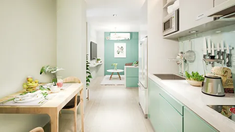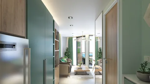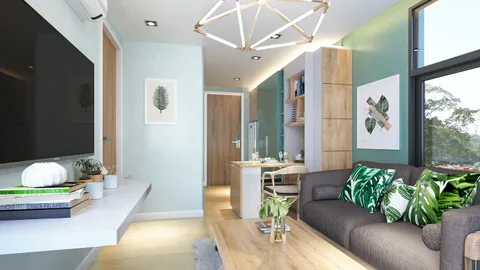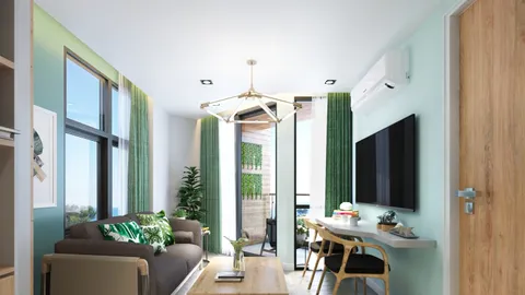 Квартира с отдельной спальной комнатой в экологичном кондоминиуме представляет собой продуманное и удобное пространство с максимальной функциональностью.