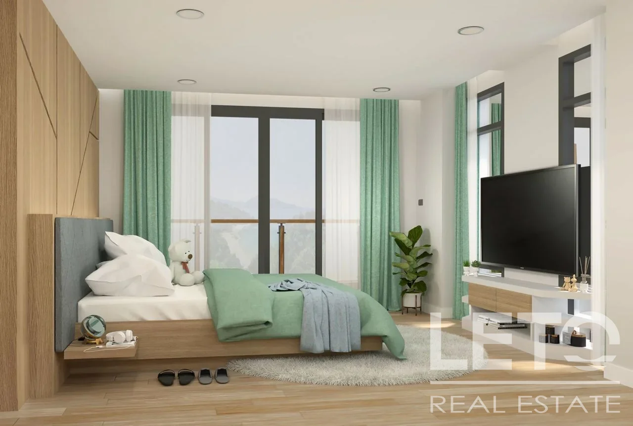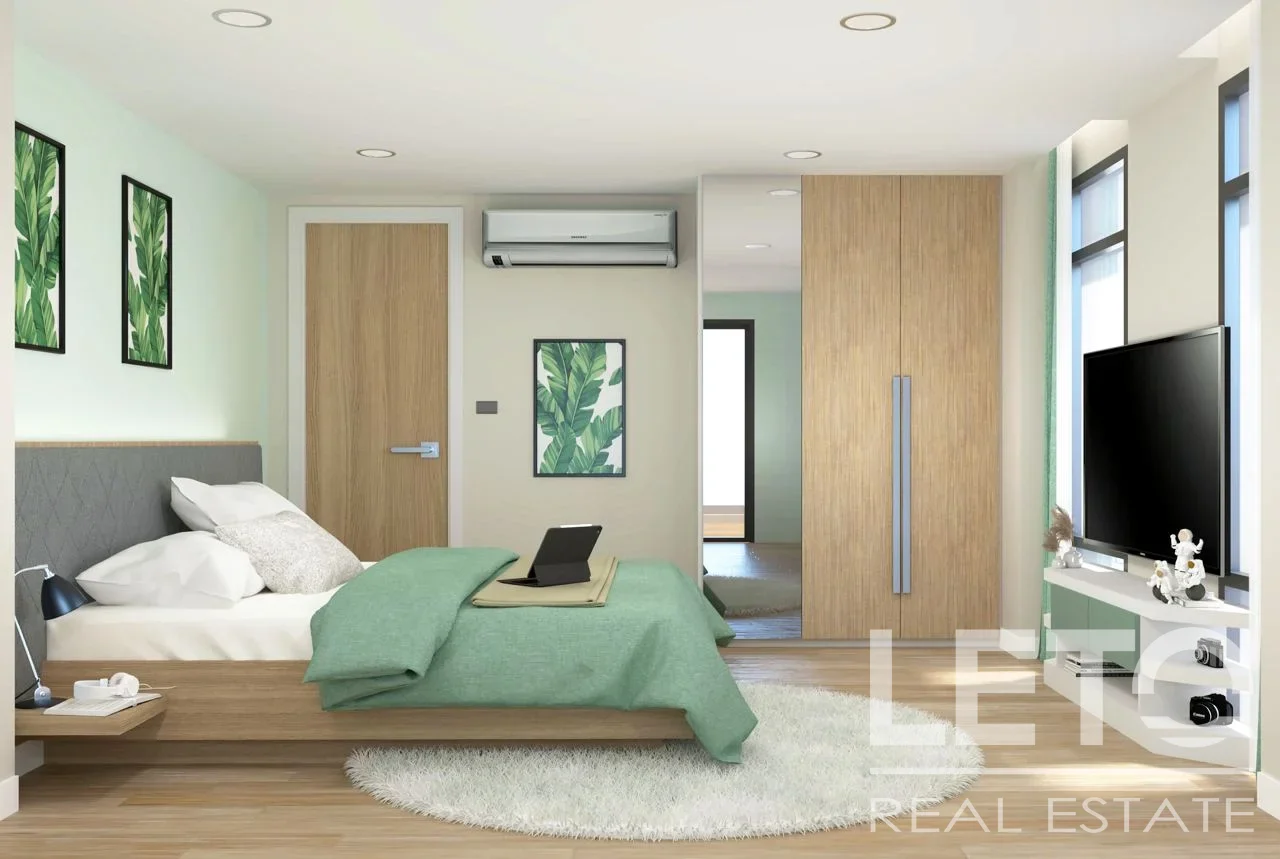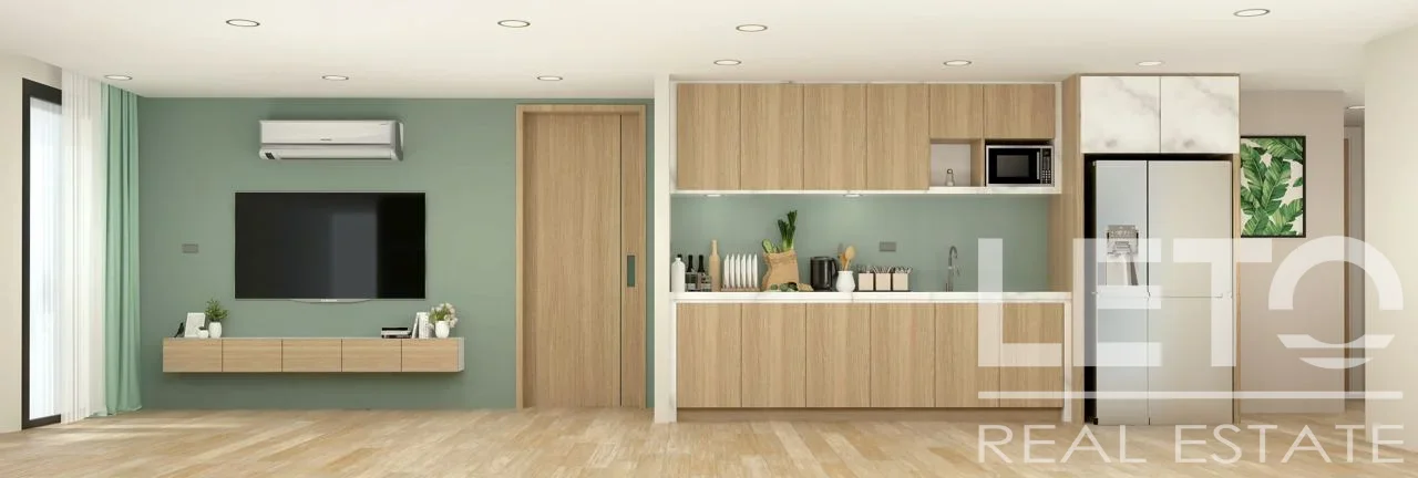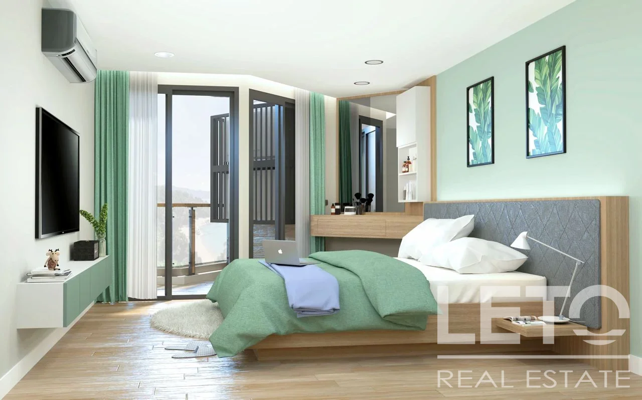 Данная квартира находится в "тихом" здании, так как основная инфраструктура кондоминиума располагается на крыше второго.
