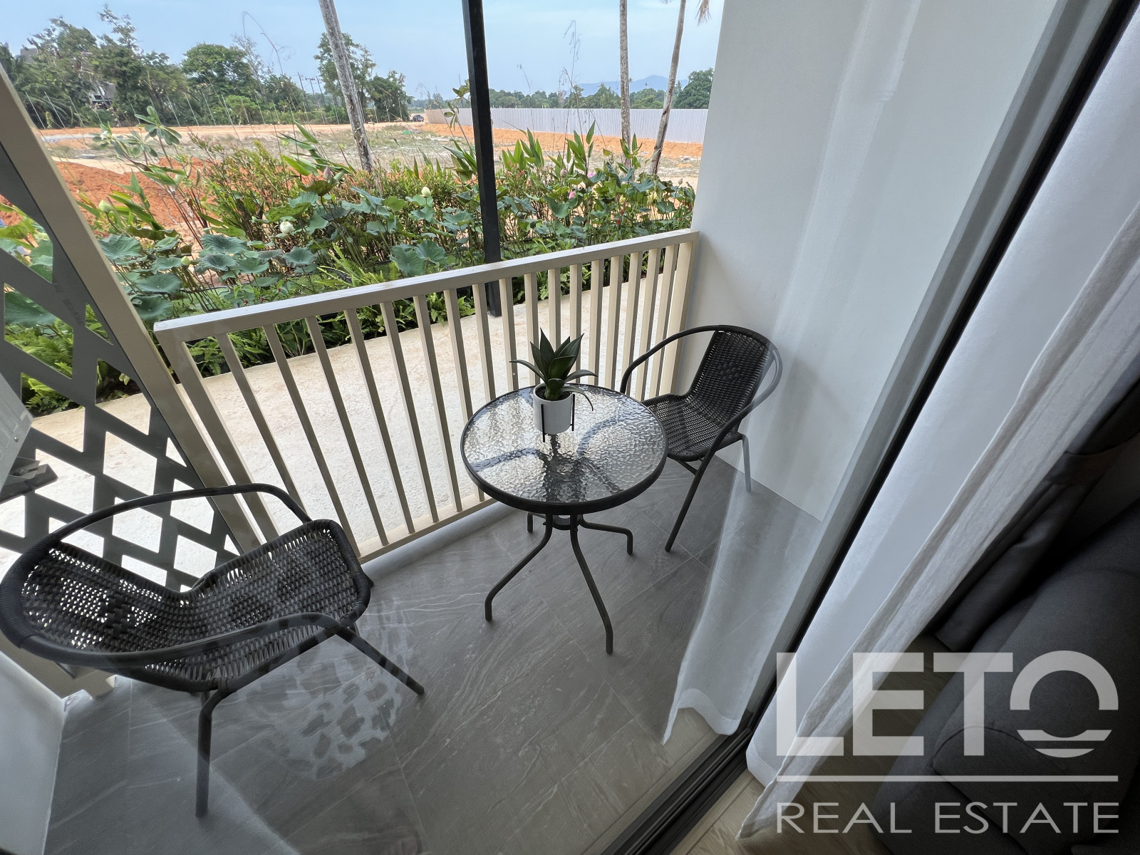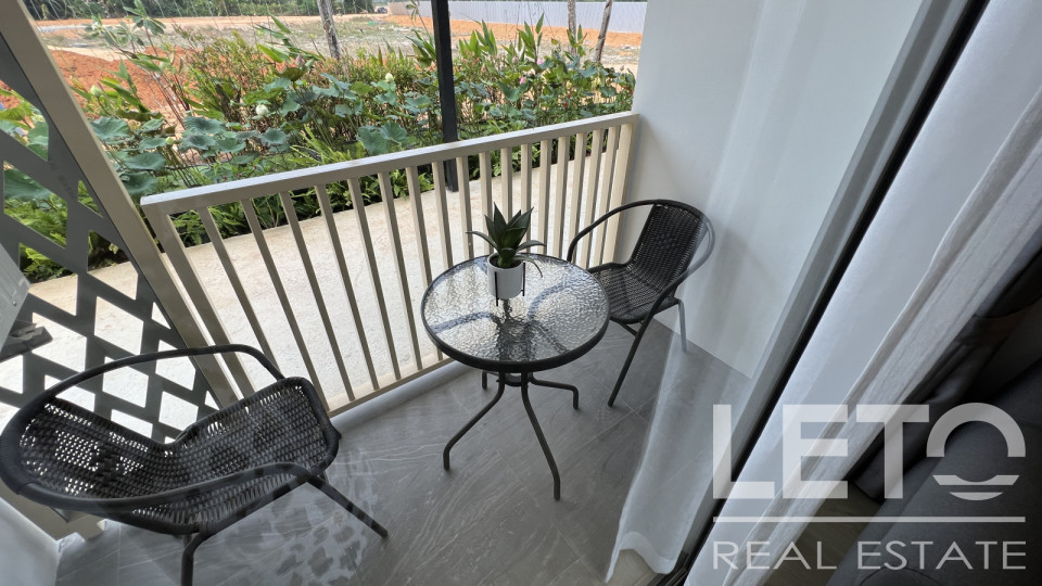 Квартира с балконом, на котором можно разместить столик и кресла и наслаждаться прекрасным видом на окружающую местность.