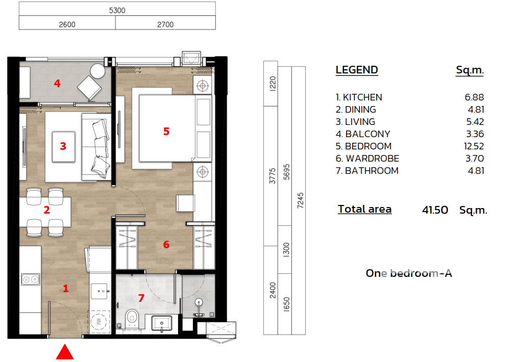 Просторная двухкомнатная квартира в строящемся комплексе премиального класса на Банг Тао