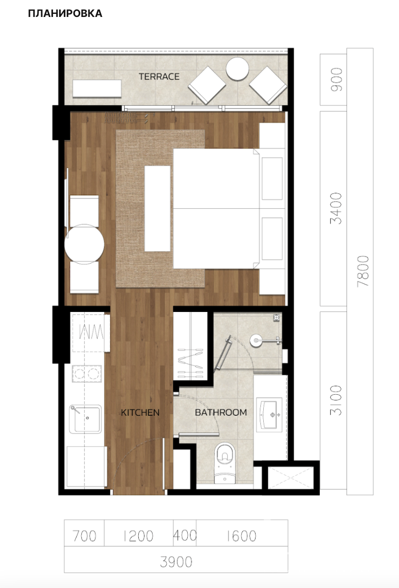 Коммунальные платежи 60 ฿/м² в месяц, оплата раз в год