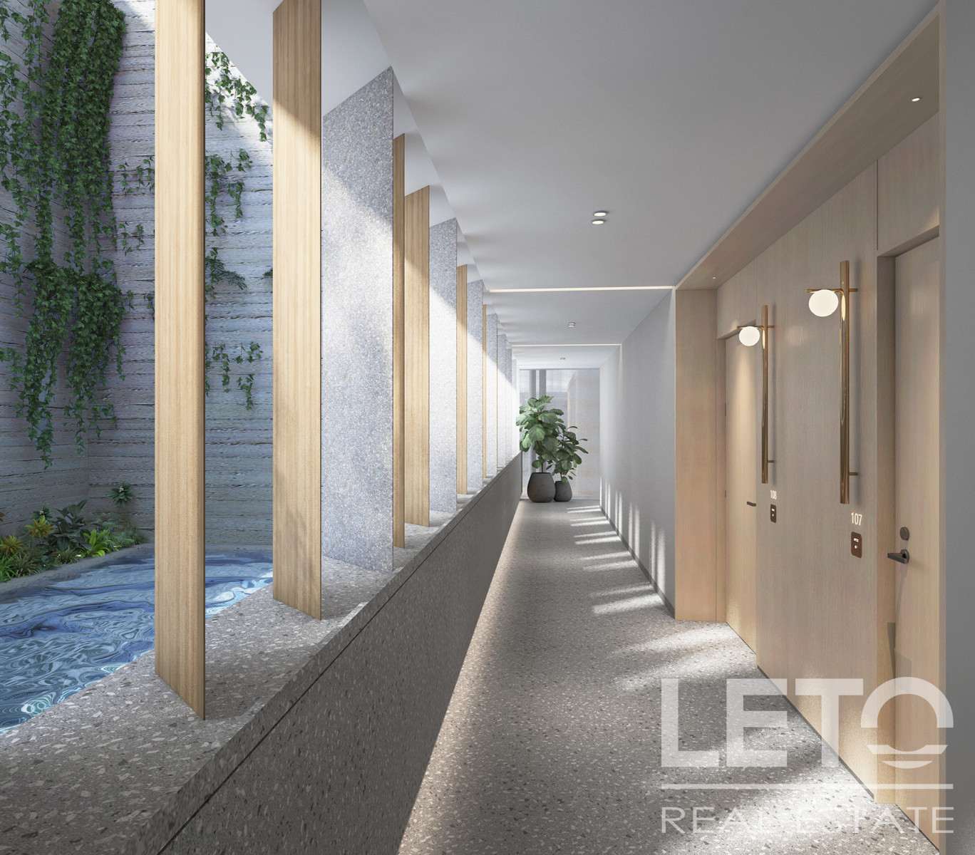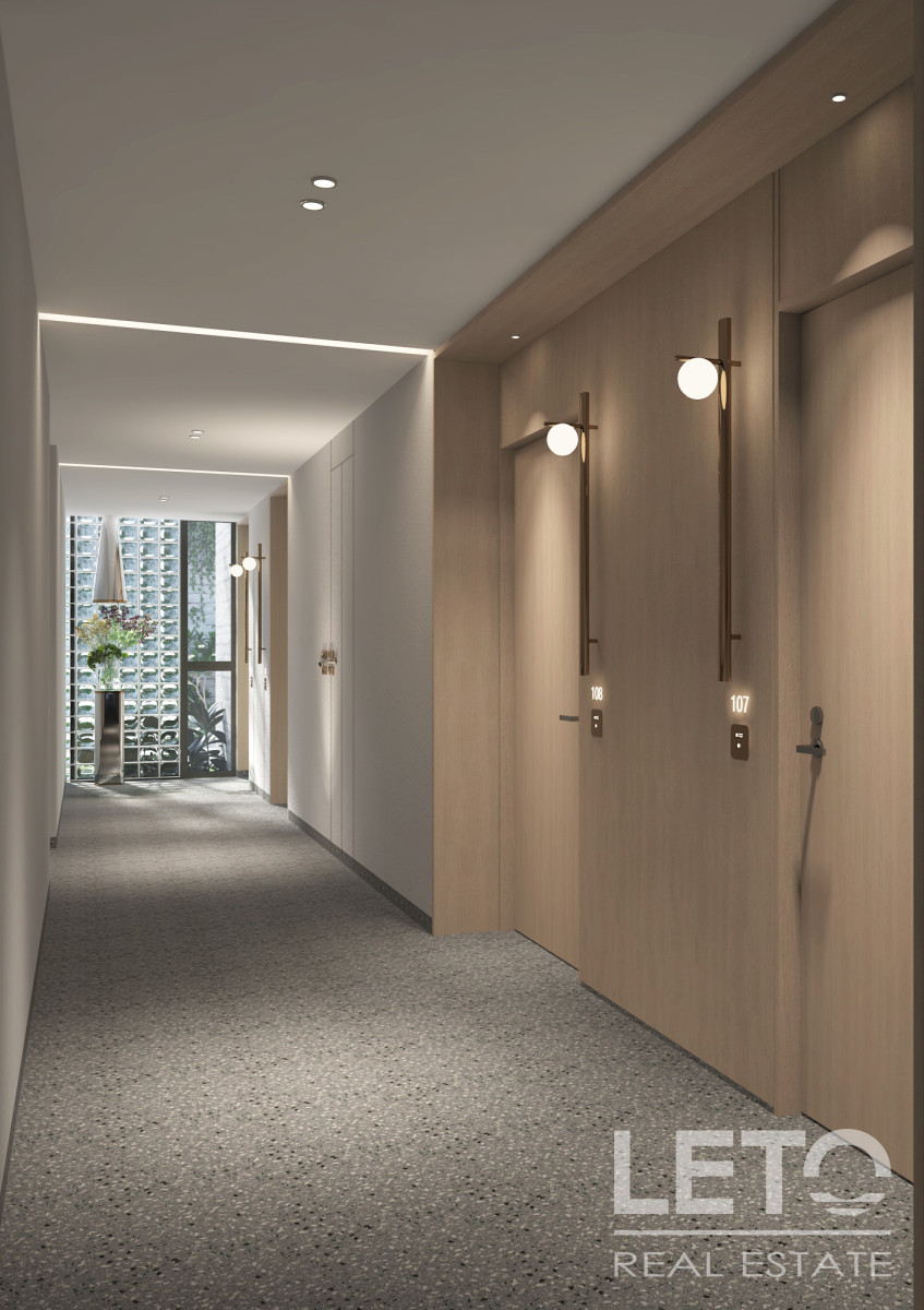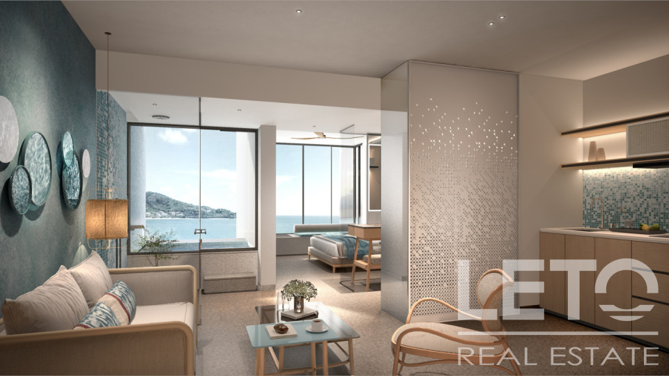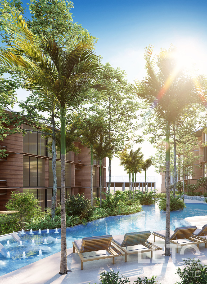 The condominium's infrastructure offers additional hotel-like amenities, such as a fitness center, spa, swimming pools, a sea-view lounge area, restaurants, and bars.