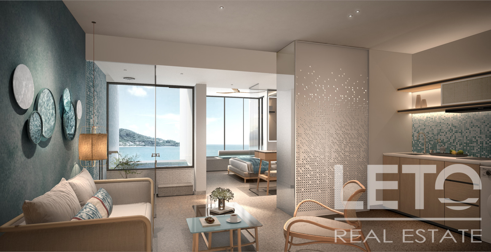 The bedroom is separated from the living area, creating additional living comfort.