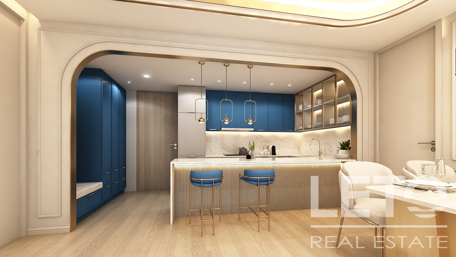 Застройщик предлагает две опции: приобрести квартиру с ремонтом и только со встроенной мебелью или полностью меблированной с техникой.