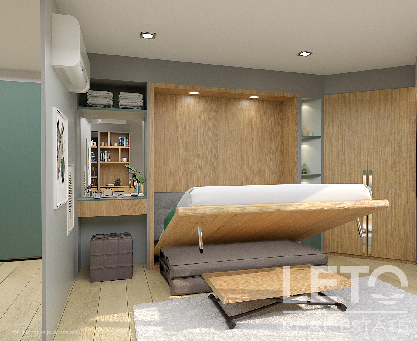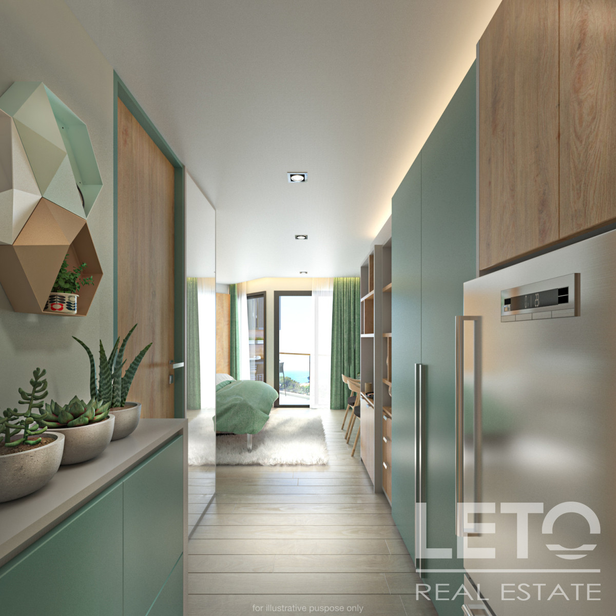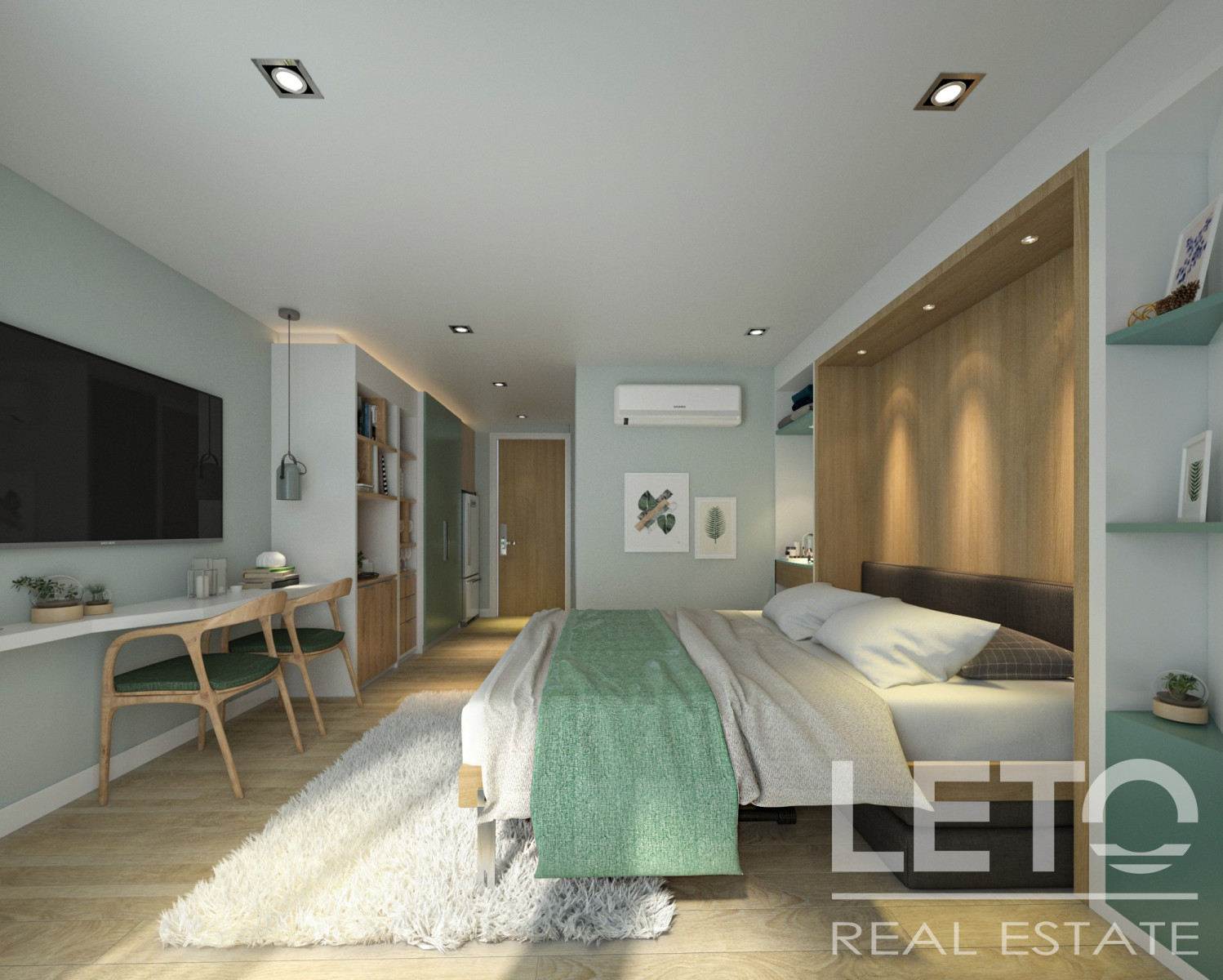 Эта студия в Serene Condominium представляет собой современное экологичное жилье, которое воплощает принципы застройщика по сохранению окружающей среды, предоставляя жильцам спокойный и экологичный образ жизни.