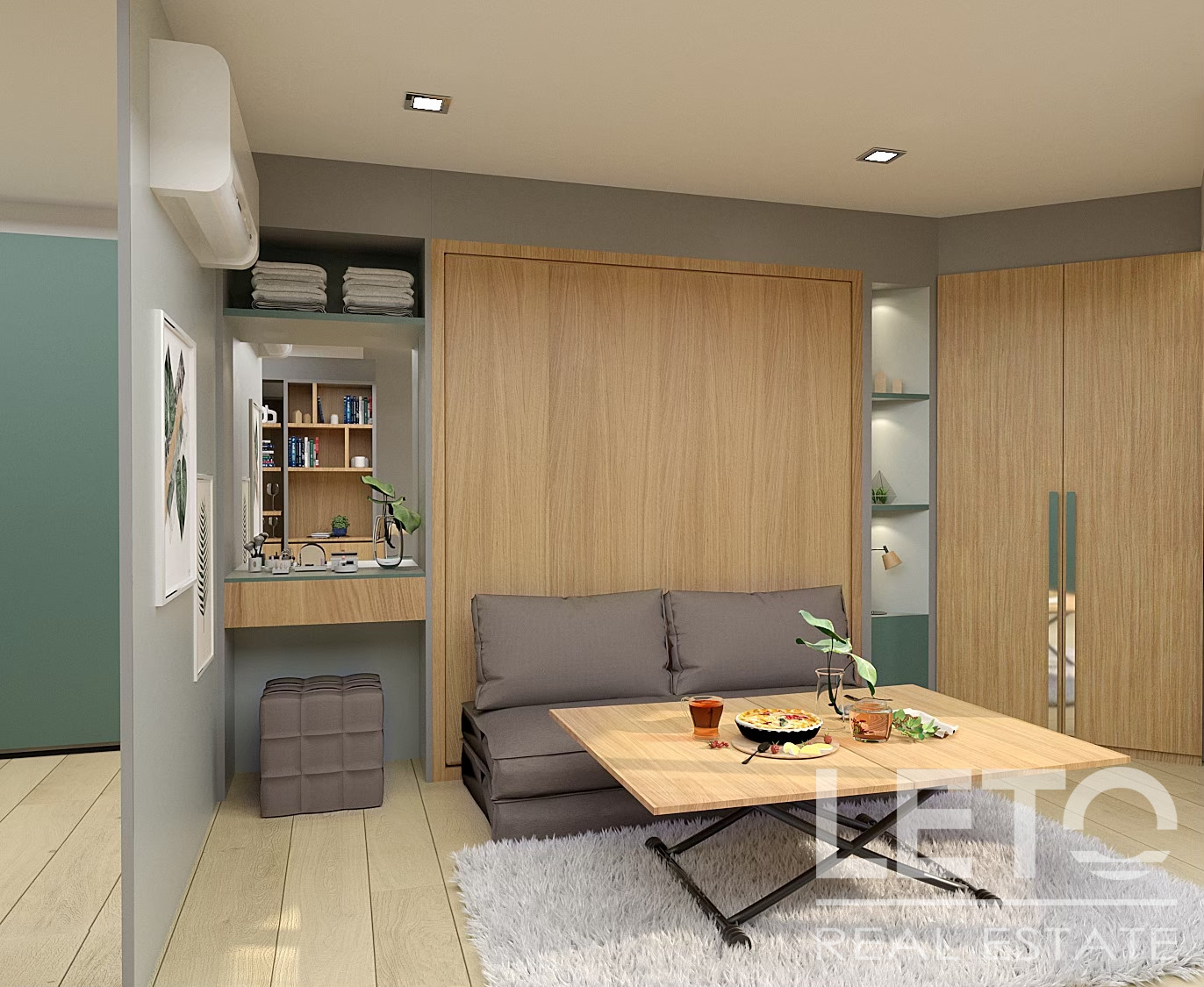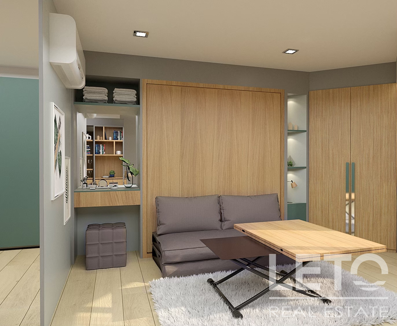 Квартира-студия площадью 28 кв.м. на втором этаже Serene Condominium отражает экологичные принципы проекта.