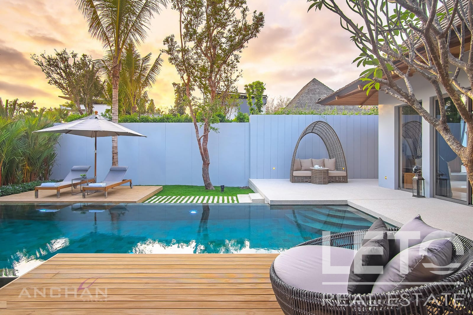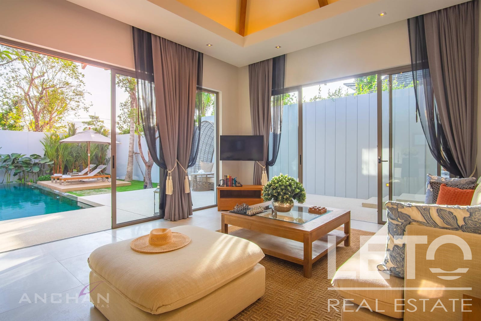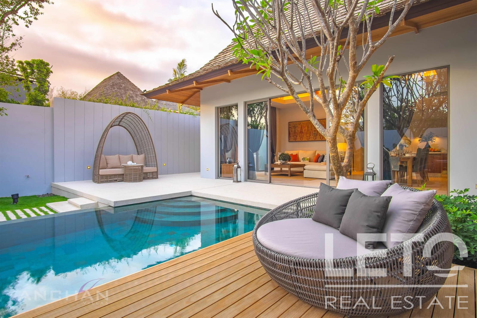 Вилла с двумя спальными комнатами и приватным бассейном, в полностью отстроенном проекте и готова к заселению.