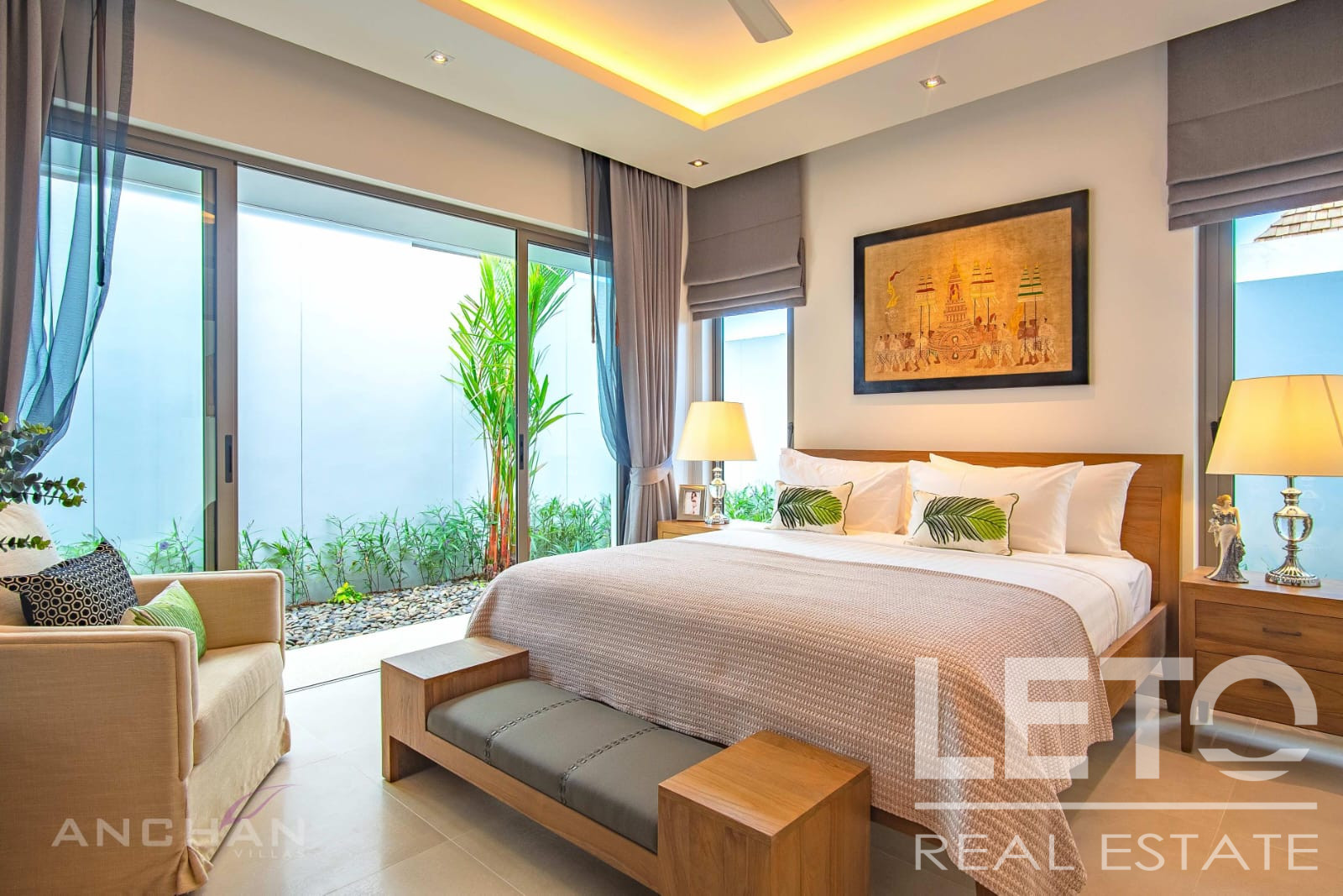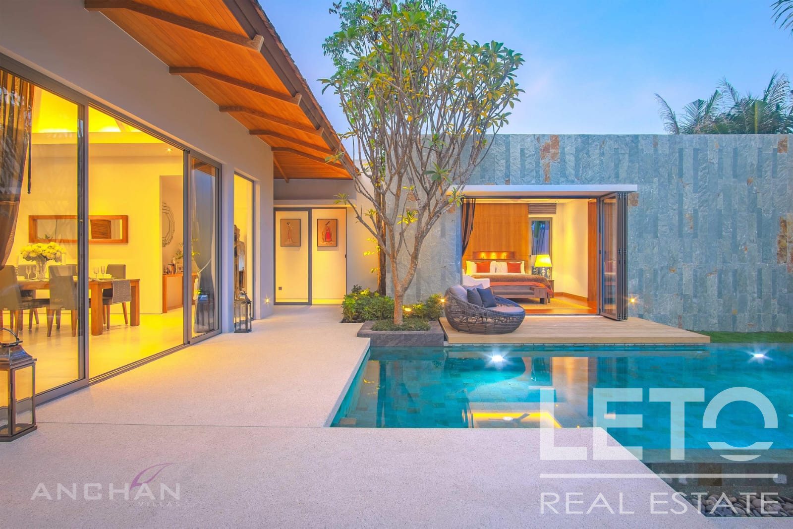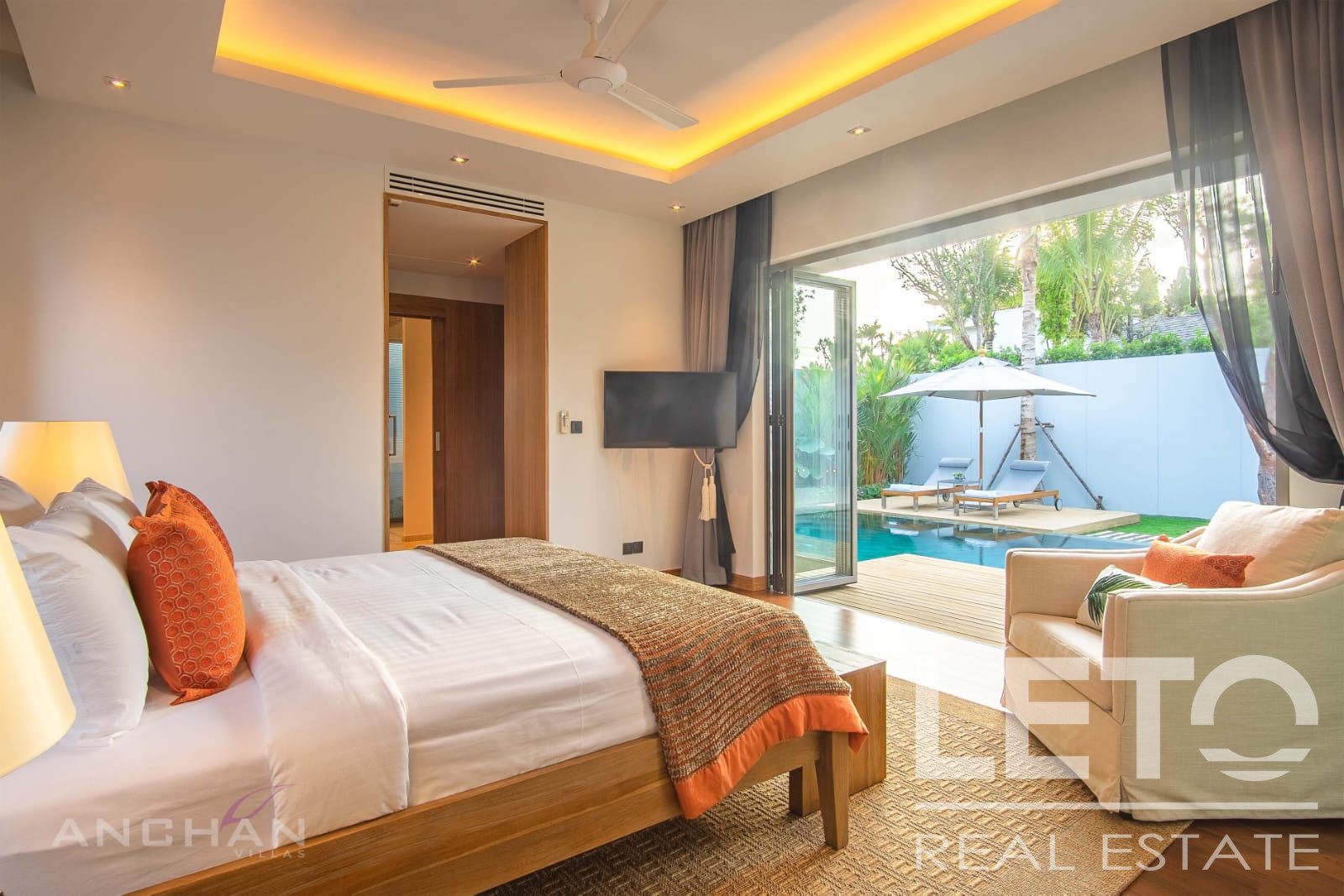 Вилла с двумя спальными комнатами и приватным бассейном, в полностью отстроенном проекте и готова к заселению.