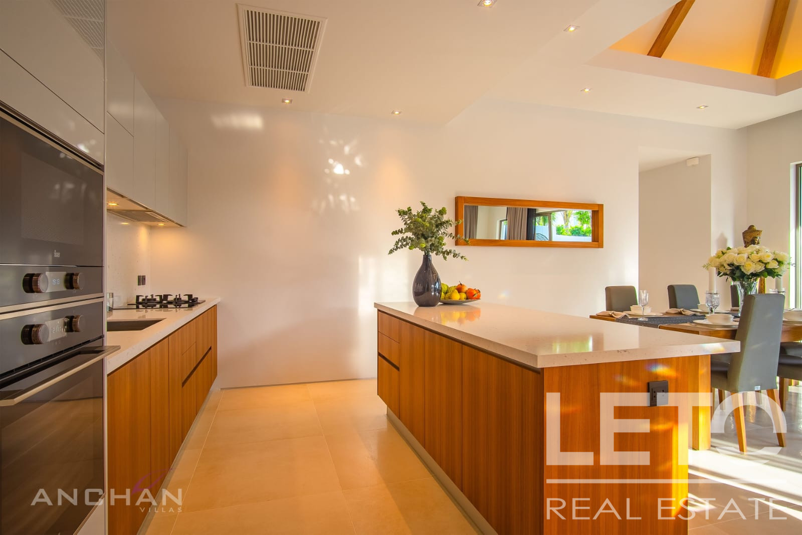Вилла полностью меблирована и оборудована техникой, а европейская кухня производит впечатление.