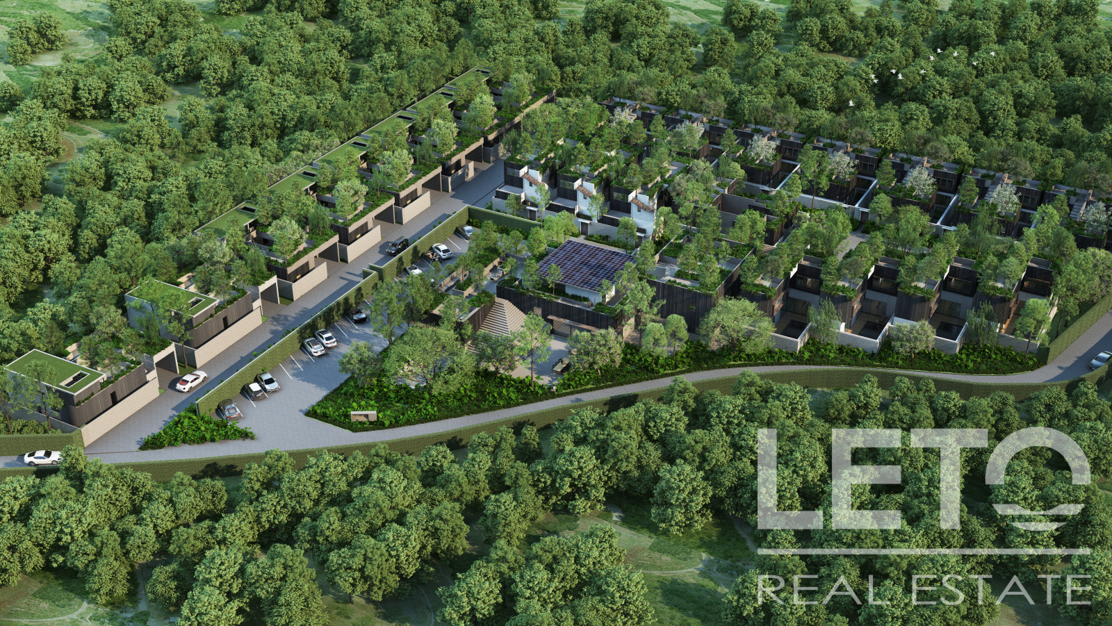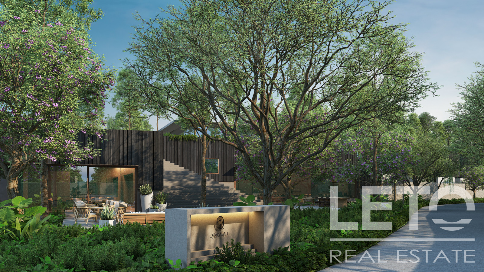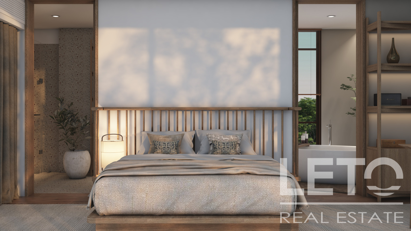 Это трехспальная вилла, окруженная зеленым садом. Гостиная, столовая и все спальни смотрят во внутренний двор, на бассейн.