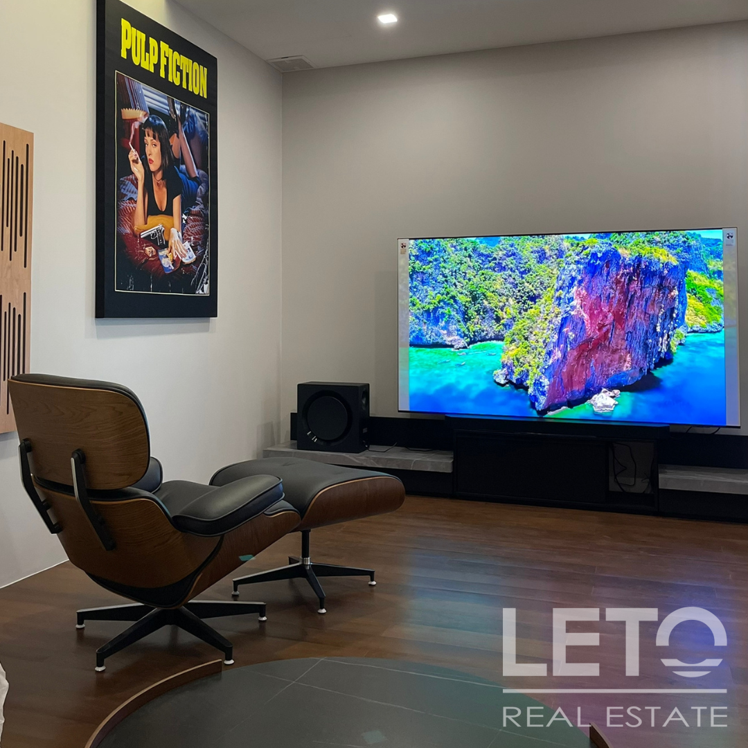 • Кинозал с телевизором 80 дюймов и звуковой системой.